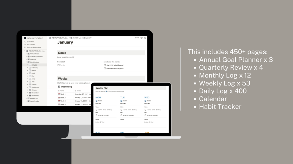 A comprehensive Notion bullet journal that helps you plan your every quarter, every month, and every day efficiently. Keep your 2022 organised!